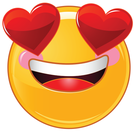 write a character on smiley with heart shaped eyes image