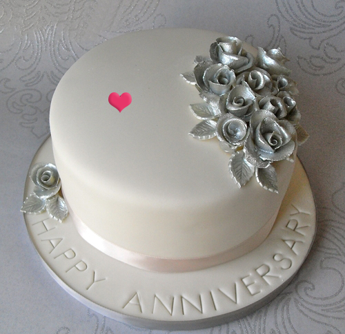 make our and add text happy anniversary cake silver cake